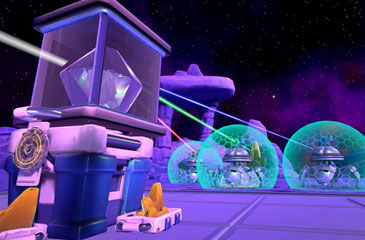 Rampaging robots have shot your ship out of the sky, and the ship coming to rescue you is 10 minutes away! You will need to deflect the robots lasers with your laser sword and shield, collect gold crystals to power your giant laser cannon, and blow up the GIANT robot to survive until the ship arrives!